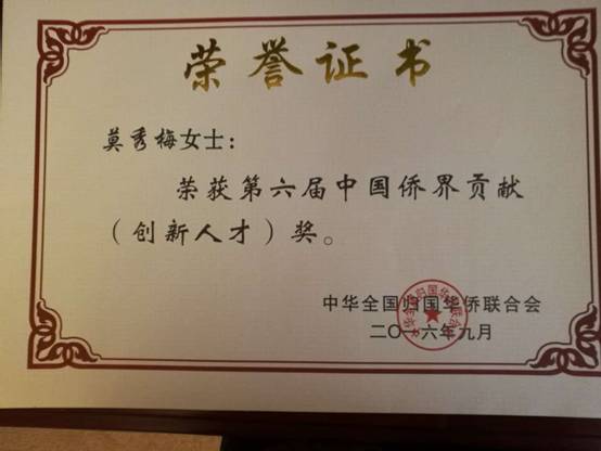 近日,中国侨联第六届新侨创新创业成果交流暨中国侨联新侨创新创业联盟成立大会在京举行,我校新归侨、化工生物学院莫秀梅教授荣获第六届“中国侨界贡献(创新人才)奖”。