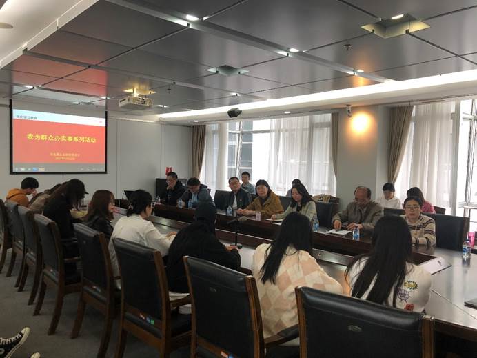 为深入贯彻习近平总书记在党史学习教育动员大会的重要讲话精神,深刻把握习近平新时代中国特色社会主义思想的精神实质、实践要求和为民情怀,进一步增强党员和师生学思践悟新思想的自觉,近日,马克思主义学院党总支开展“我为群众办实事”教工支部与学生面对面实事工程活动。学院党总支书记戴叶萍,教工第一党支部书记周林、第二党支部书记陆益军、第三党支部书记陈健,以及各教工支部代表和全体研究生参加活动。活动由戴叶萍主持。