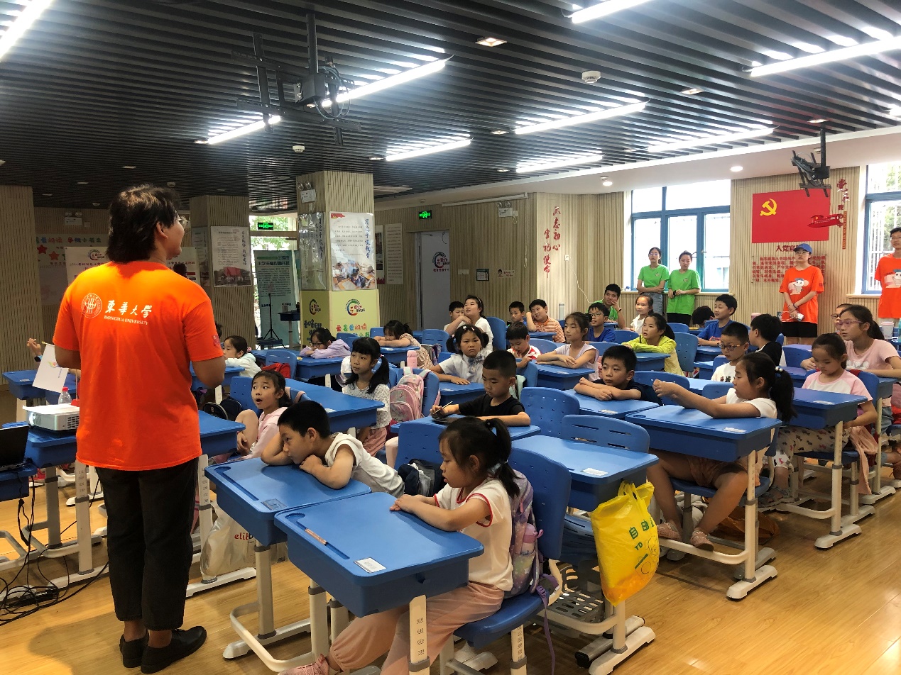 (华英苑在“爱心暑托班”为小朋友授课)